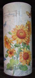 Paragüero de hojalata redondo estilo vintage decorado con diferentes motivos florales iris, hortensia, rosa o girasol. Está lacado en el interior para soportar bien la humedad.